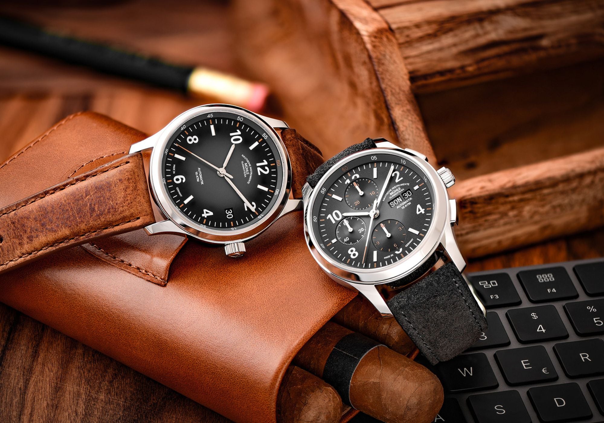 Teutoniaはエレガンスとスポーティーなタッチを兼ね備えたタイムピースです。スポーティーさを演出する最大の要因はタイムキーピング機能であり、時・分カウンターが他にはないダイナミクスをフェイスにもたらすとともに、斜めに配置された日付・曜日ディスプレイもその効果を助長しています。