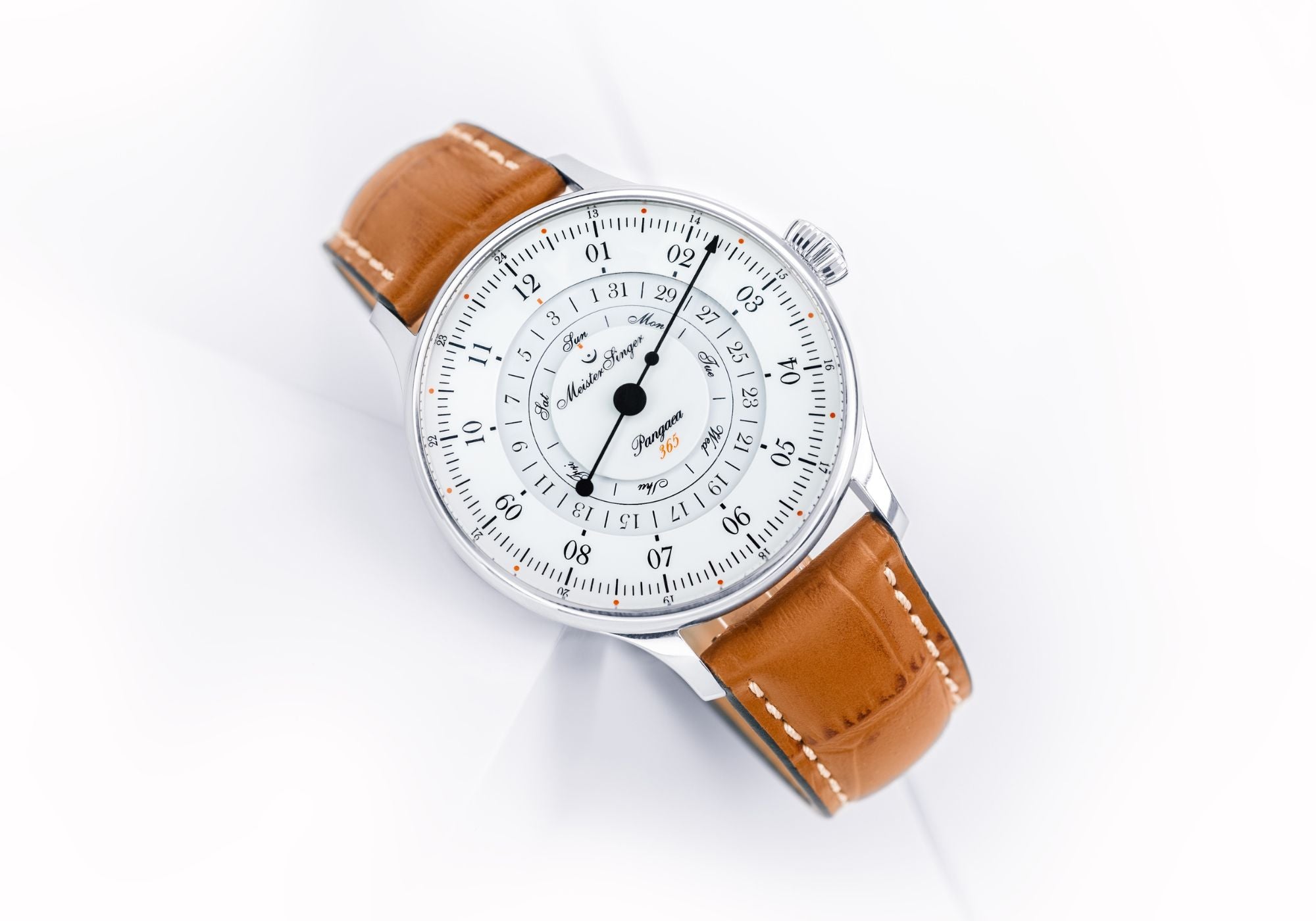 時代を超越したデザインと、コンパクトで美しいスリムなケースのパンゲアは男性でも女性でも着用できるエレガントのモデルです。パンゲア デイ デイトは、 1本の針で時刻、日付、曜日の全てが一目でわかるという点がマイスタージンガ―ファンに愛され続けているポイントです。