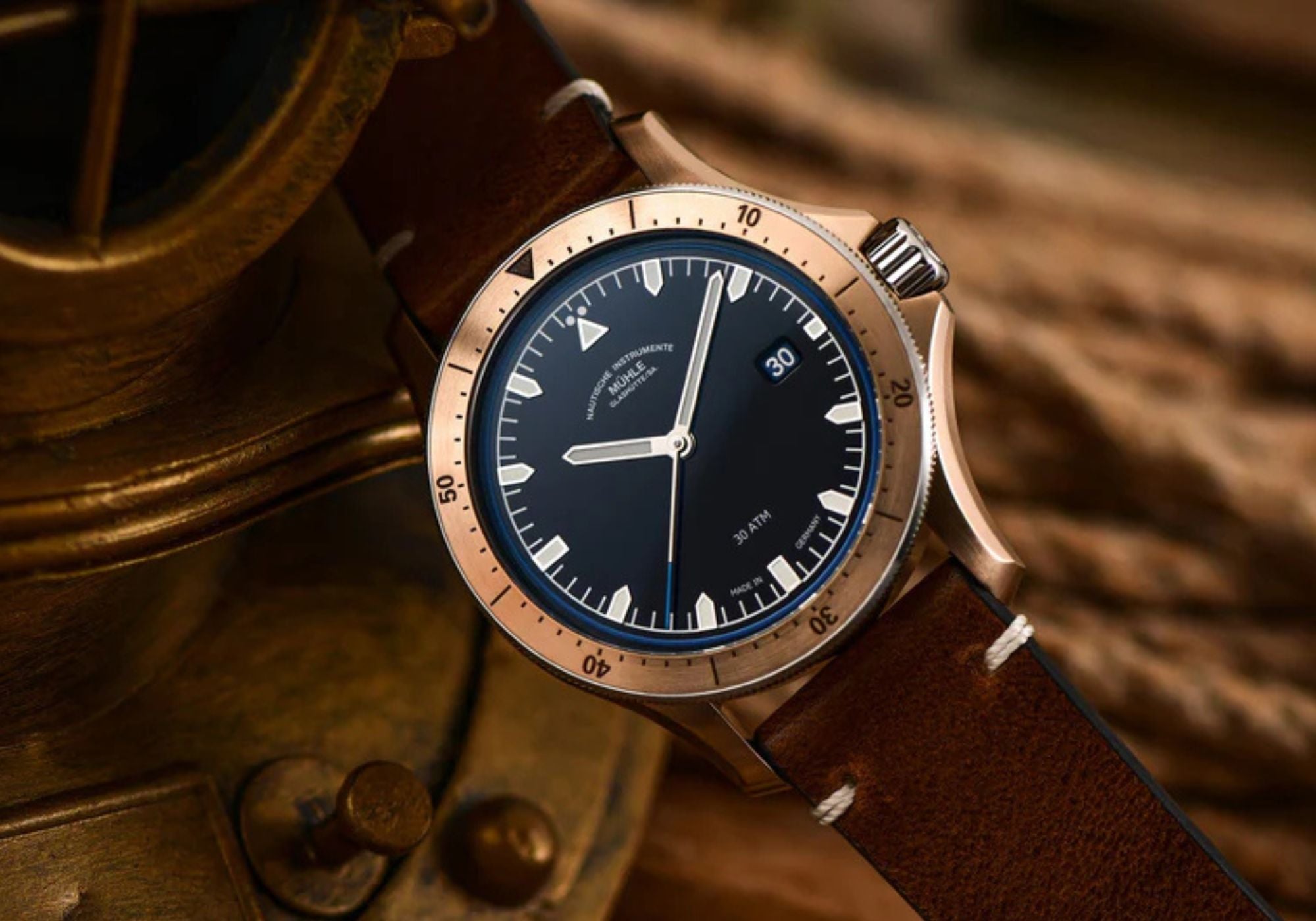 ProMare(プロマーレ)は、ラテン語の「pro mare=海のために」に由来する、MÜHLE GLASHÜTTEのマリンスポーツ向けコレクションです。過酷な自然環境での使用を想定した堅牢なケース構造、高い視認性を誇るダイヤルデザイン、そして確かな精度を生む自社調整機構「ウッドペッカー・ネック・レギュレーター」を搭載。海辺やアウトドアシーンはもちろん、都市生活にも溶け込む力強く洗練されたルックスで、アクティブに生きるすべての人へ信頼の時間を届けます。