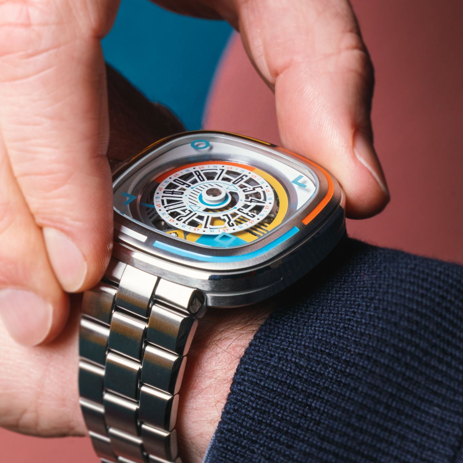 SEVENFRIDAYは、「#liveSEVENFRIDAY」という理念のもと、日常に高揚感と自由をもたらすスイス発のライフスタイルブランド。スチールや工場、エンジン、ツールといったインダストリアルデザインから着想を得た大胆な造形美と、緻密に計算されたメカニズムが特徴です。時計という枠を超え、個性とスタイルを体現するアートピースとして、世界中のファンを魅了し続けています。